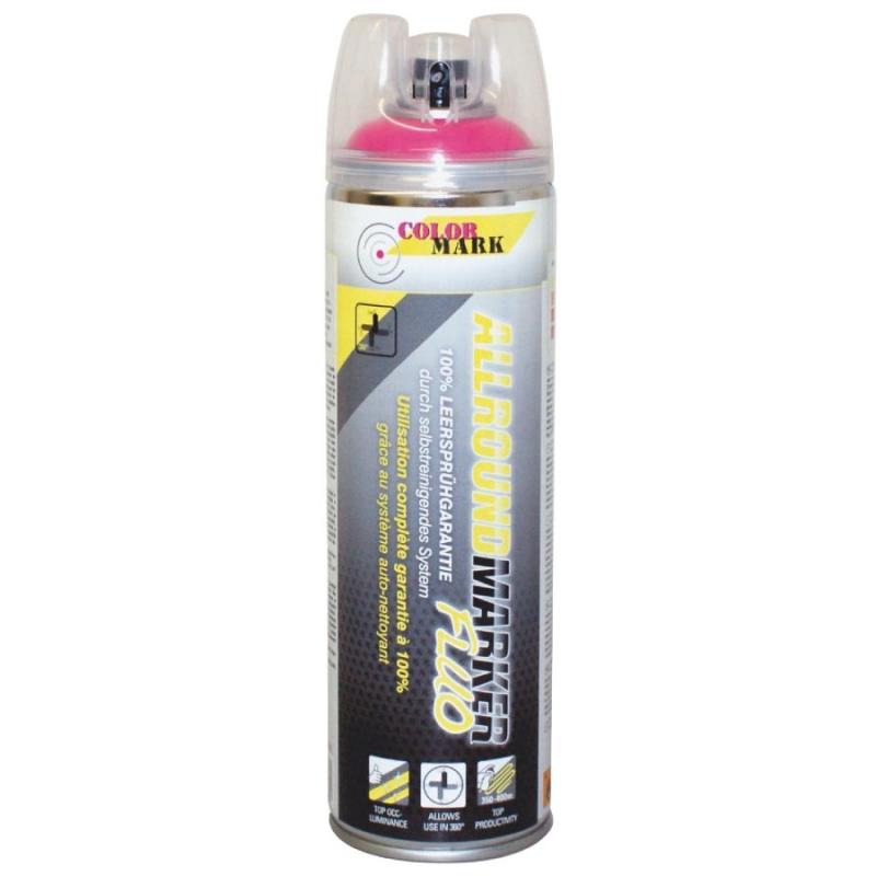 Īpašs uzgalis, kas nodrošina izsmidzināšanu 360° rādiusā. Aizsargvāciņš nodrošina īpaši precīzu un vienmērīgu rezultātu. Uzgalim ir pašattīrīšanās funkcija, pēc lietošanas nevajag to tīrīt atsevišķi. Baloniņš iztukšojas pilnībā. Fluorescējošā krāsa ir redzama pustumsā. Lieliska saķere ar mitru virsmu. Lieto marķēšanai būvniecībā, elektrisko darbu veikšanā utt. Krāsa rozā, tilpums 500 ml.