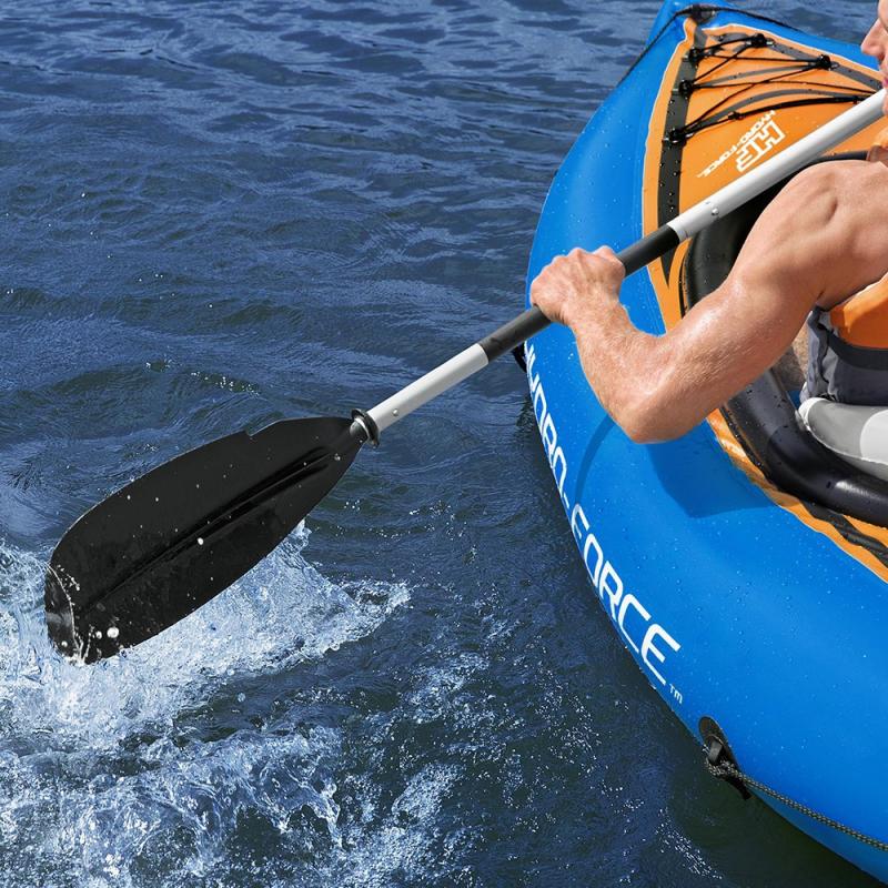 Bestway® Hydro-Force™ alumīnija kajaka airis ir izturīgs un viegls airis, kas paredzēts efektīvai airēšanai dažādos ūdeņos. Ar kopējo garumu 230 cm un piecu daļu konstrukciju tas nodrošina ērtu transportēšanu un uzglabāšanu. Trīs fiksācijas pozīcijas ļauj pielāgot airi gan labročiem, gan kreiļiem, savukārt mīkstie rokturi nodrošina komfortu ilgstošas lietošanas laikā.