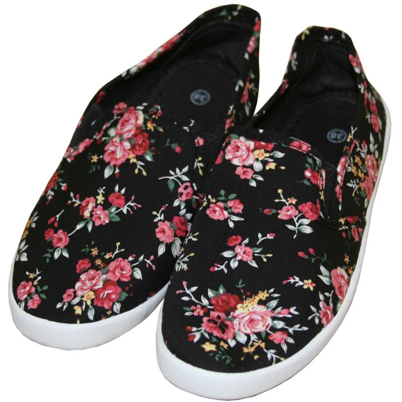 Melni auduma apavi ar ziediem izgatavoti no viegla un elpojoša auduma, nodrošinot pēdām komfortu visas dienas garumā. Apaviem ir elastīgi sānu ielaidumi ērtai uzvilkšanai un novilkšanai. Gumijas zole nodrošina labu saķeri un izturību, padarot tos piemērotus lietošanai gan telpās, gan ārā. Šie apavi ir ideāli piemēroti brīvā laika aktivitātēm. Izmērs 36.