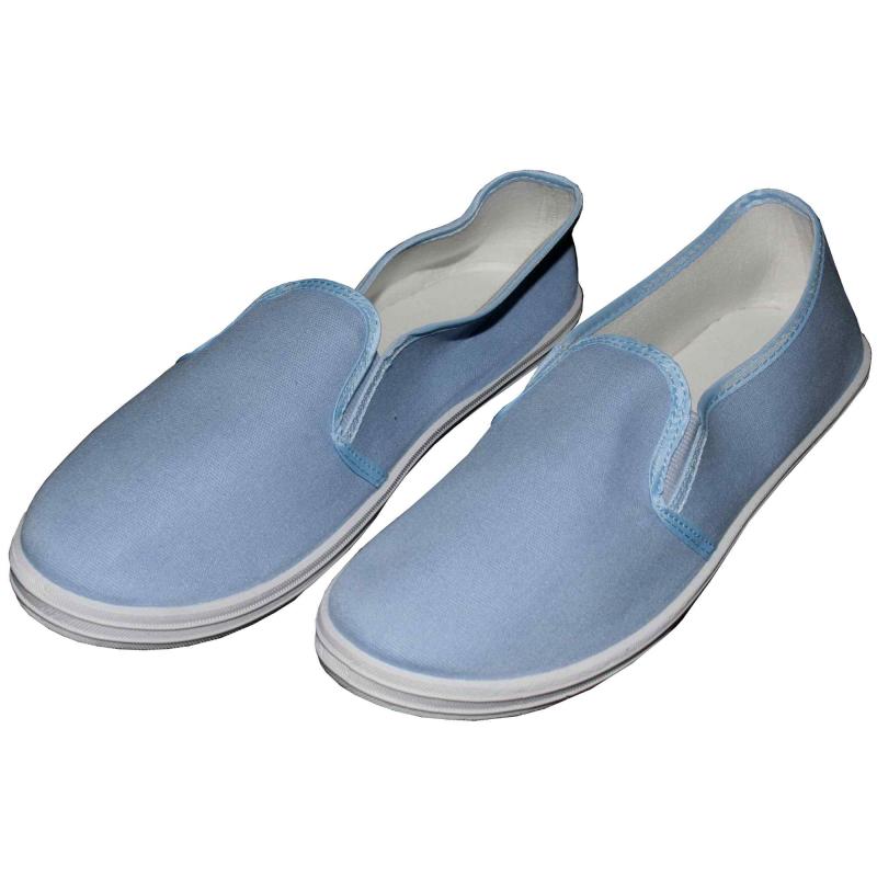 Gaiši zili auduma apavi izgatavoti no viegla un elpojoša auduma, nodrošinot pēdām komfortu visas dienas garumā. Apaviem ir elastīgi sānu ielaidumi ērtai uzvilkšanai un novilkšanai. Gumijas zole nodrošina labu saķeri un izturību, padarot tos piemērotus lietošanai gan telpās, gan ārā. Šie apavi ir ideāli piemēroti brīvā laika aktivitātēm. Izmērs 44.