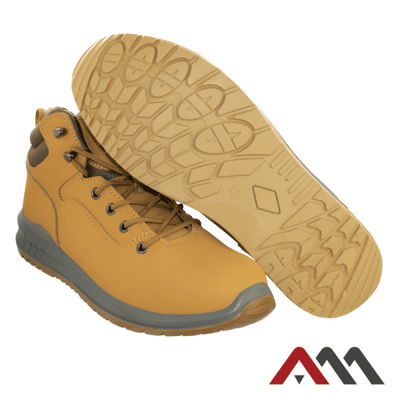 Puszābaki ar pievilcīgu, modernu dizainu un metāla ieliktni purngalā. Virsma no nubuka ādas, kas pārklāta ar kārtiņu, kas pasargā no netīrumiem. 6 pāri spēcīgi apavu auklu turētāji. Mīksta mēle un apmale palielina komfortu. Izņemama iekšzole. Ārzole izgatavota no poliuretāna (PU), izturīga pret dīzeļdegielu (FO). Aizsardzības kategorija SB FO SRC. CE sertifikāts kat. II EN ISO 20345: 2012. Izmērs 45.