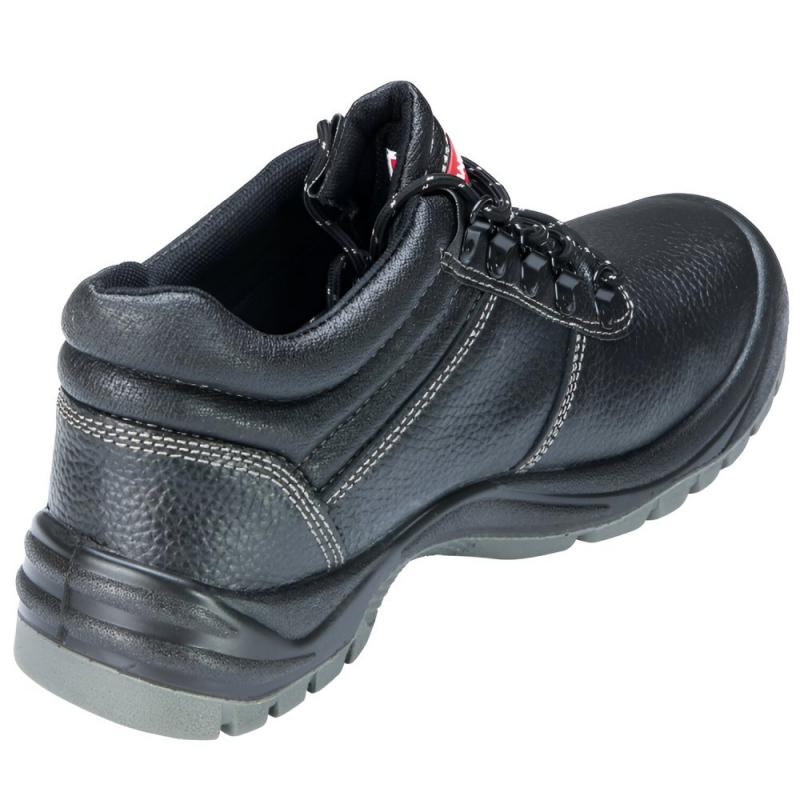 Ādas puszābaki ar metāla ieliktni purngalā. Odere izgatavota no trikotāžas sieta. Zole izgatavota dubultā blīvuma poliuretāna ar pretslīdes īpašībām, izturīga pret dīzeļdegvielu. Apaviem ir tērauda purngals, tērauda pretduršanas zolīte, antistatiskas īpašības, enerģijas absorbcija papēža daļā, ierobežota ūdens caurlaidība un absorbcija. Aizsardzības klase S3 SRC. Atbilst standartam ISO 20345: 2011. Izmērs 43.
