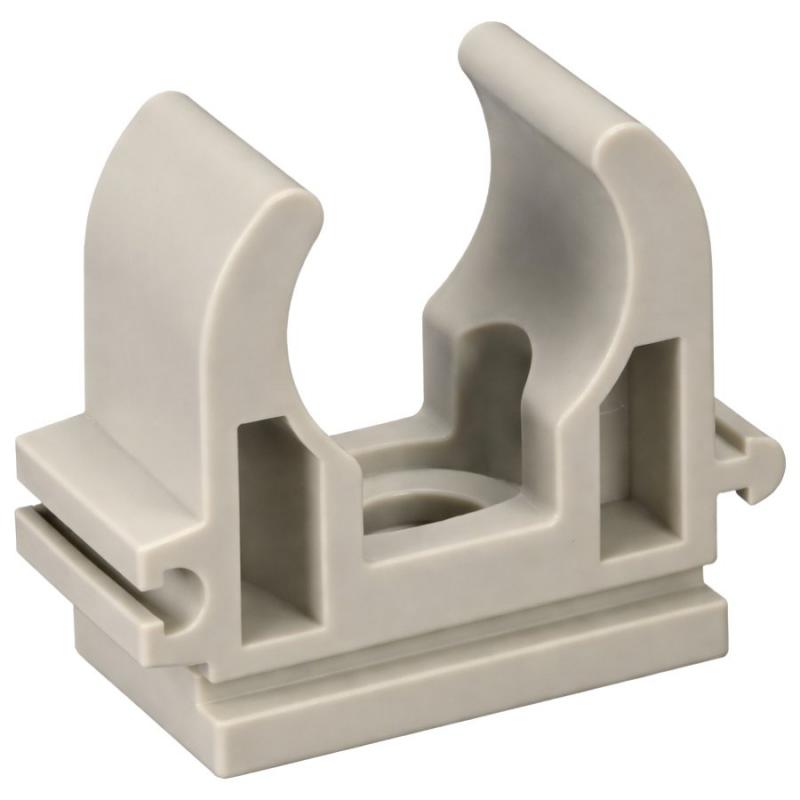 Plastmasas apskava PPR cauruļu stiprināšanai nodrošina ātru un uzticamu cauruļvadu nostiprināšanu tikai ar vienu skrūvi. Izturīga pret augstām temperatūrām, to var izmantot karstā ūdens apgādei un apkurei. Īpašas rievas, lai vairākas apskavas viegli savienotu paralēlai cauruļu montāžai. Diametrs 40 mm.