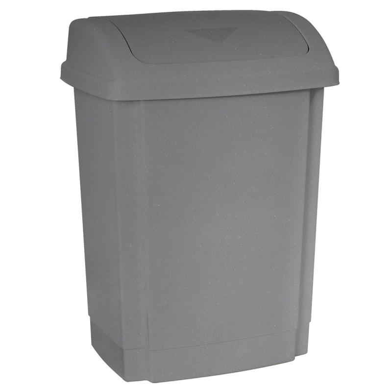 Atkritumu konteiners Swing pelēkā krāsā. Atkritumu tvertnei ir viegli atverams vāks. Vāku var nolocīt uz aizmuguri, lai labāk piekļūtu tvertnei, un to var noņemt, lai būtu viegli nomainīt atkritumu maisu. Izgatavota no polipropilēns (PP). Produkts ir pārstrādājams, un to var ievietot cietās plastmasas atkritumu tvertnēs. Izmērs (G x P x A) 325 x 252 x 460 mm, tilpums 25 l.