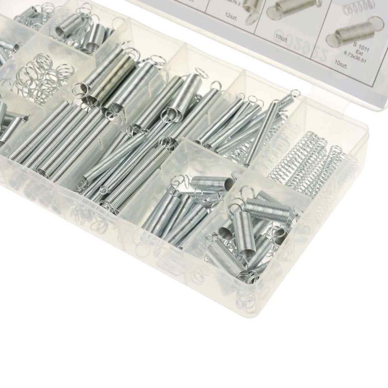 Dažādu izmēru vilkšanas un pagarinājuma atsperu komplekts.
