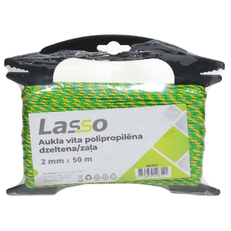 Aukla vīta polipropilēna (dzeltena/zaļa), 2mm. 50M
