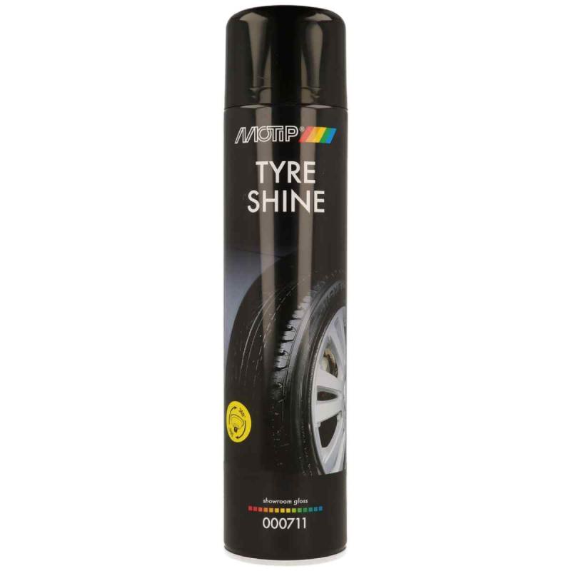 Aerosols automobiļa riepu krāsas pastiprināšanai. Produkta raksturojums: Satur silikonus. Aizsargā pret atmosfēras apstākļu iedarbību. pH - neitrāls. Piešķir spožumu. Darba temperatūra 15 - 25 °C. Lietošanas instrukcija: Sakratiet pirms lietošanas. Virsmai ir jābūt tīrai un sausai. Izvairieties no kontakta ar bremžu detaļām. Uzklājiet plānā, vienmērīgā slānī uz riepas apmalēm. Nav piemērots divriteņu mašīnām. Uzglabājams līdz: skatīt uz iesaiņojuma (derīgs līdz).