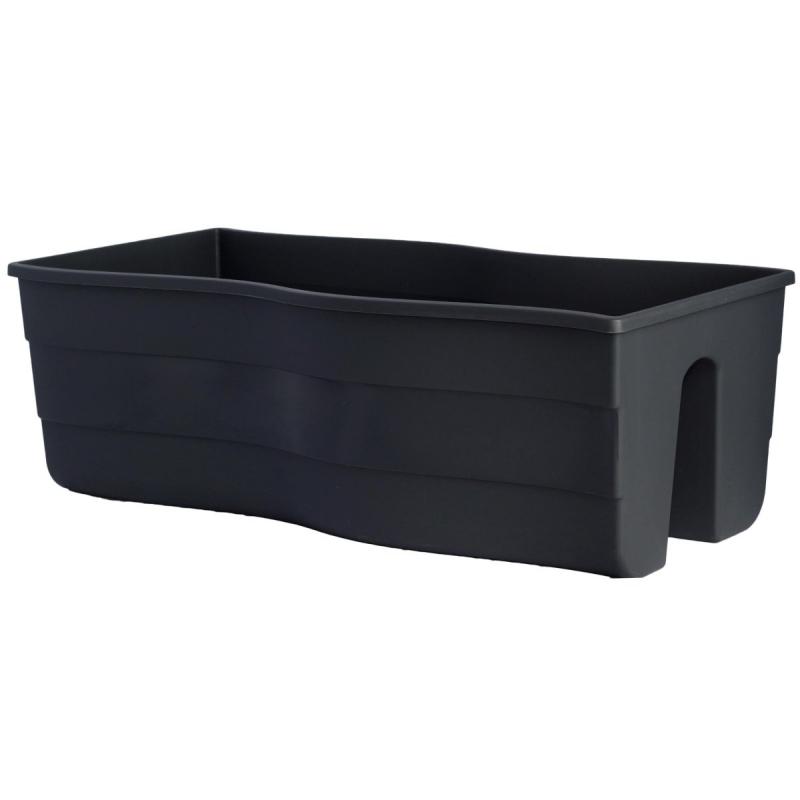 Melna balkona kaste Wave. Šī plastmasas dekoratīvā balkona kaste ir viegla, stabila, izturīga pret skrāpējumiem un triecieniem. To ir ļoti viegli piestiprināt pie margām, pateicoties padziļinājumam un īpašiem rokturiem. Aizņem vietu abās margu pusēs. Izmērs (G x P x A) 60 x 27 x 20 cm.
