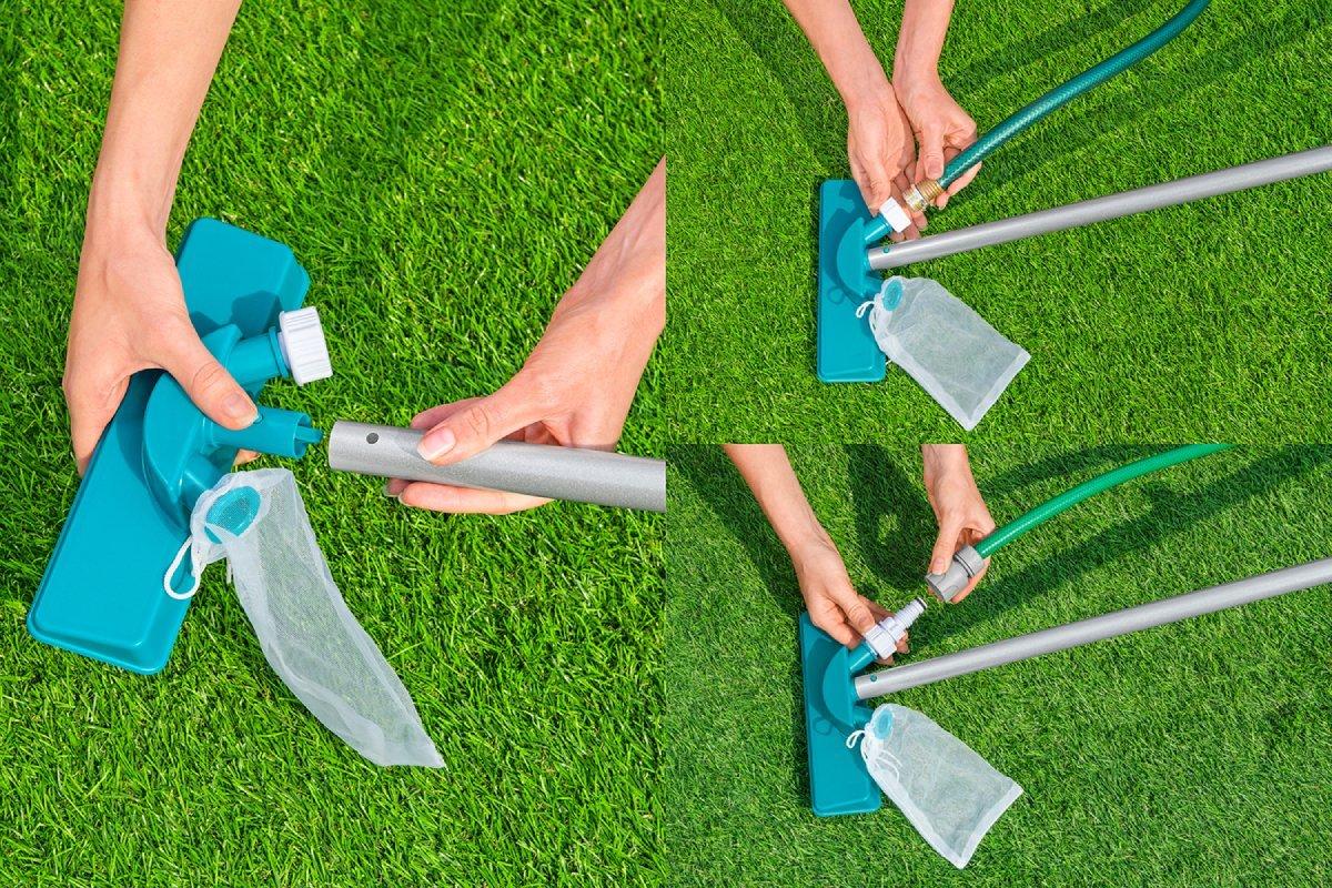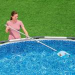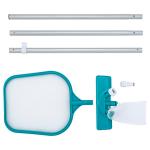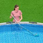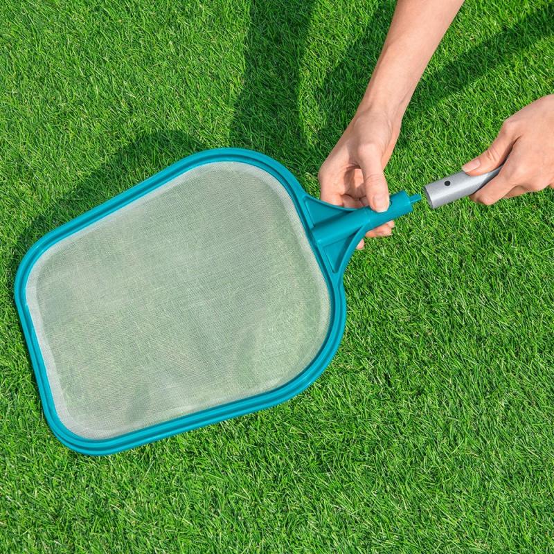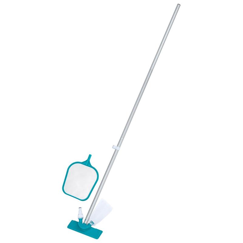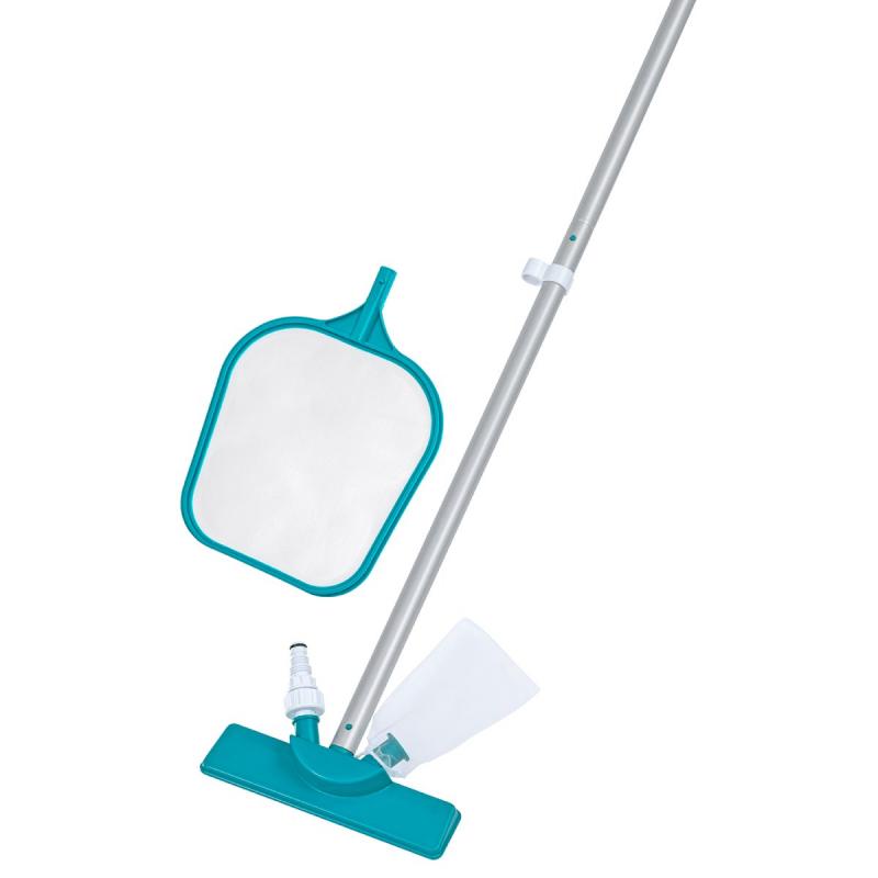 Bestway AquaClear™ baseina kopšanas komplekts ir ideāli piemērots baseiniem ar diametru līdz 3.96 metriem. Komplektā ietilpst viegls 2.03 metru garš kāts ar maināmiem vakuuma un tīkla uzgaļiem, kas nodrošina efektīvu baseina tīrīšanu. Vakuuma uzgalis savienojas ar standarta dārza šļūteni, radot sūkšanas efektu, kas savāc gružus atkārtoti izmantojamā maisiņā. Tīkla uzgalis ar izturīgu tīklu ļauj viegli noņemt lapas un citus peldošus netīrumus no ūdens virsmas. Šis komplekts nodrošina vienkāršu un efektīvu baseina uzturēšanu, saglabājot ūdeni tīru un dzidru.