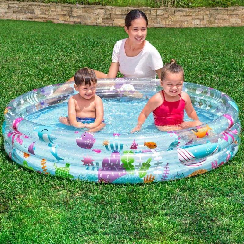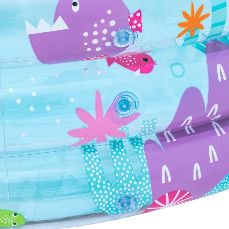 Bestway® Sea World piepūšamais bērnu baseins ar izmēriem ir lieliska izvēle bērniem no 2 gadu vecuma, nodrošinot jautru un drošu veidu, kā atvēsināties karstajās vasaras dienās. Baseins izceļas ar krāsainu zemūdens pasaules dizainu un trīs vienāda izmēra piepūšamiem gredzeniem, kas nodrošina stabilitāti un izturību. Šis baseins ir viegli uzstādāms un pārvietojams, padarot to par ideālu risinājumu ātrai un ērtai bērnu izklaidei dārzā vai pagalmā.