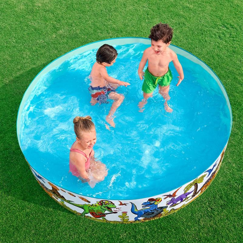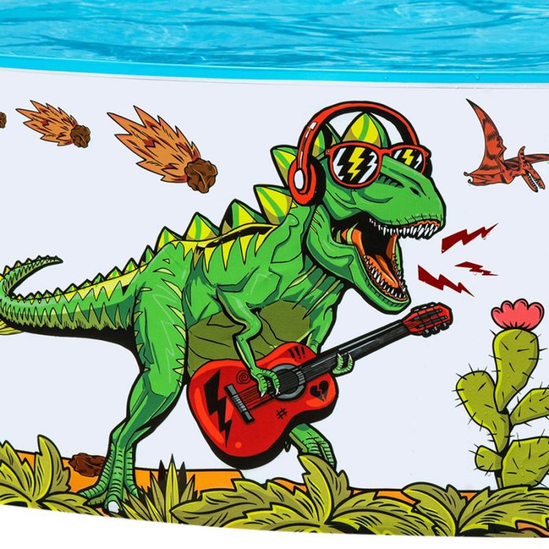 Bestway® Fill 'N Fun™ bērnu baseins ar dinozauru dizainu ir ideāla izvēle aizraujošām vasaras ūdens spēlēm bērniem no 2 gadu vecuma. Plašais baseins ar jautru, krāsainu dinozauru apdruku veicina bērna iztēli un pārvērš katru peldēšanās reizi par īstu piedzīvojumu. Baseinu nav nepieciešams piepūst, to vienkārši izritina, piepilda ar ūdeni un jautrība var sākties. Pateicoties izturīgajām PVC sienām un stabilam baseina dibenam, tiek nodrošināta drošība un ilgmūžība.
