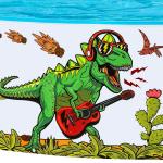 - Dinozauru tematika ar krāsainām ilustrācijām