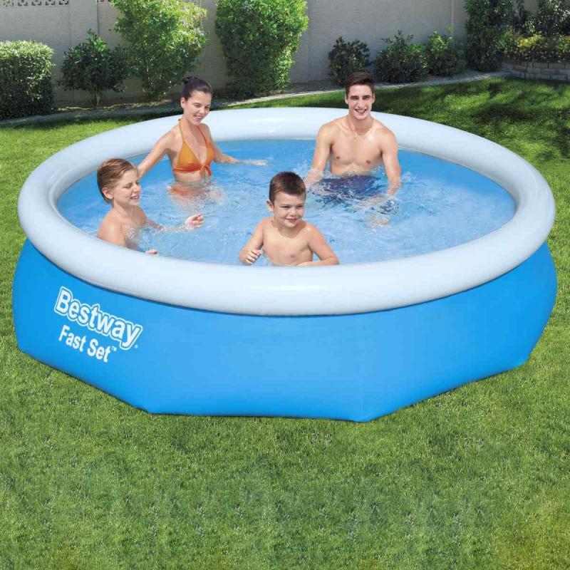 Vienkārši, ātri un piemēroti ģimenēm Bestway® Fast Set™ baseins lieliska izvēle pagalmam. Tā uzstādīšanai nepieciešama tikai līdzena virsma. Piepūtiet augšējo gredzenu baseins pacelsies, tiklīdz tas būs piepildīts ar ūdeni. DuraPlus™ materiāla UV izturīgas sānu sienas ir izturīgas pret caurduršanu, svaru, slodzi un kustību.