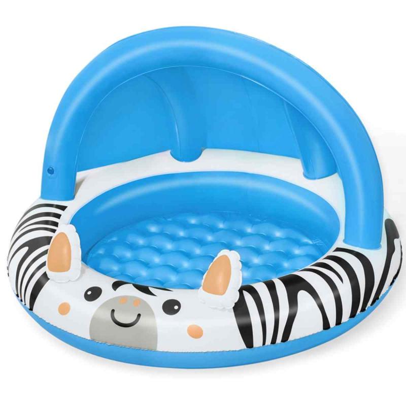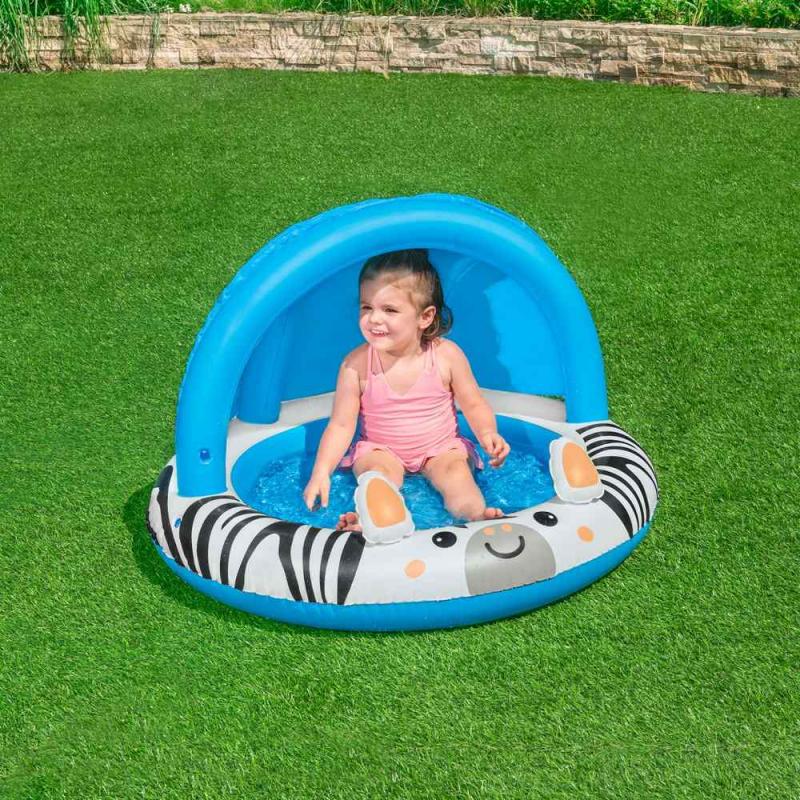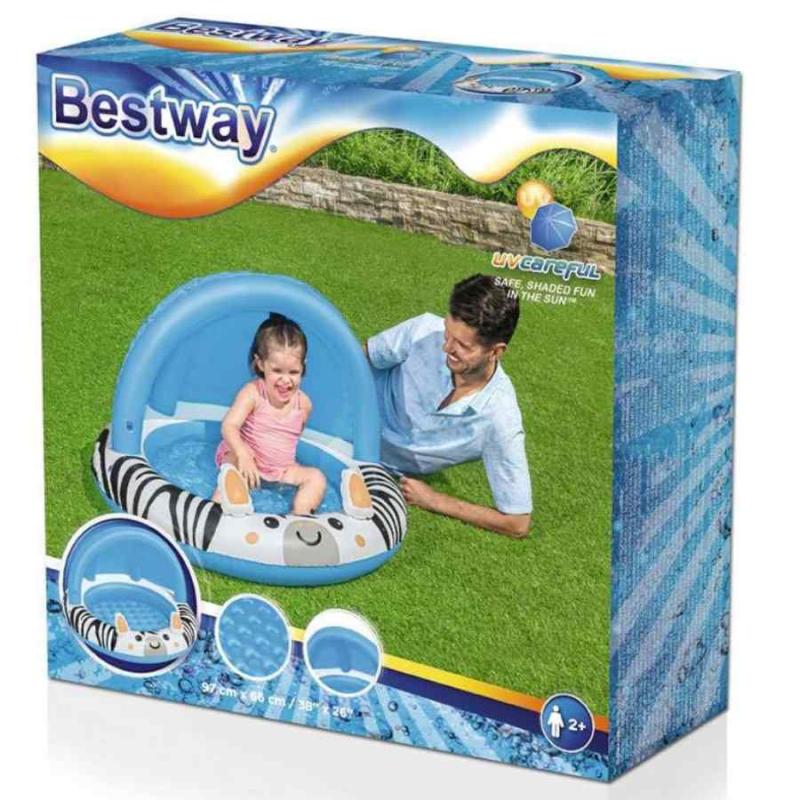 Bestway® Safari Sun™ baseins ir ideāli piemērots bērniem no 2 gadu vecuma. Tam ir piepūšama UV Careful™ saules nojume, kas īpaši karstās dienās nodrošina nepieciešamo aizsardzību pret spēcīgu saules gaismu. Turklāt piepūšamā grīda piedāvā papildu komfortu. Pateicoties kompaktajam dizainam baseins ir piemērots arī nelieliem dārziem un terasēm.