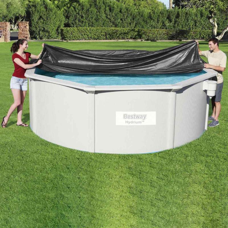 Baseina pārsegs 396 cm diametra apaļajiem baseiniem, kā arī 366 cm diametra Fast Set™ apaļajiem baseiniem un 366 cm diametra Hydrium™ tērauda karkasa baseiniem. Pateicoties inteliģentajām drenāžas atverēm, neuzkrājas lietus ūdens. Pārsegs ir aprīkots ar montāžas virvēm, kas ļauj viegli un droši uzstādīt. Izgatavots no izturīga PVC materiāla, pārsegs nodrošina lielisku aizsardzību pret UV stariem, lapām un citiem piesārņotājiem.