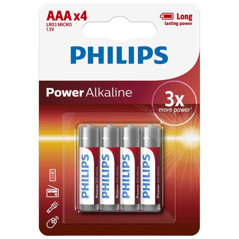 Philips AAA baterijas ir piemērotas nelielām elektronikas ierīcēm, piemēram, pultīm, pulksteņiem un rotaļlietām. Šīs baterijas nodrošina stabilu un ilgstošu enerģijas padevi, kas īpaši svarīgi ikdienas lietošanā. Philips baterijas izceļas ar uzticamu darbību un ilgu kalpošanas laiku. Baterijas veids - AAA LR03, komplektā 4 gb.