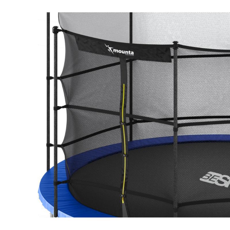 Melnā aizsargtīkla materiāls ir īpaši izturīgs un tomēr mīksts pateicoties speciālam audumam. Tīklam ir ērta ieeja ar rāvējslēdzēju un papildus nostiprinājumiem ērtai un drošai ikdienas lietošanai. Batuts ir piemērots ģimenes dārzam, privātmājas pagalmam vai