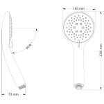 AB dušas klausule melnā krāsā ar 3 režīmiem piedāvā stilīgu un funkcionālu risinājumu mūsdienu vannas istabas aprīkojumam. Šī apaļā dizaina dušas galviņa ir aprīkota ar trīs dažādiem ūdens plūsmas režīmiem, ieskaitot centrālo masāžas zonu ar lielākām strūklām, kas ļauj pielāgot dušošanos individuālajām vajadzībām. Matētais melnais pārklājums piešķir produktam elegantu un modernu izskatu, kas lieliski papildinās jebkuru vannas istabas stilu. Ergonomiskais rokturis ar praktisku režīmu pārslēgšanas slēdzi nodrošina ērtu lietošanu un vienkāršu strūklas regulēšanu dušošanās laikā. Dušas galvas diametrs 10 cm, kopējais augstums 23.8 cm, G1/2 collu pieslēgums.