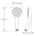 AB dušas klausule hromētā krāsā ar 5 režīmiem piedāvā īpaši daudzveidīgu un luksusa klases dušošanās pieredzi. Šī augstās kvalitātes dušas galviņa ir aprīkota ar pieciem dažādiem ūdens plūsmas režīmiem, kas nodrošina plašas pielāgošanas iespējas dažādām vajadzībām un noskaņojumiem. Hromētais virsmas pārklājums sniedz ne tikai elegantu izskatu, bet arī ilgstošu izturību pret koroziju un vieglu ikdienas apkopi. Dažādās strūklu zonas ļauj baudīt gan maigus masāžas efektus, gan intensīvus ūdens plūsmas režīmus atbilstoši personīgajām vēlmēm. Dušas galvas diametrs 9.9 cm, kopējais augstums 24 cm, platums 8.5 cm, G1/2 collu pieslēgums.