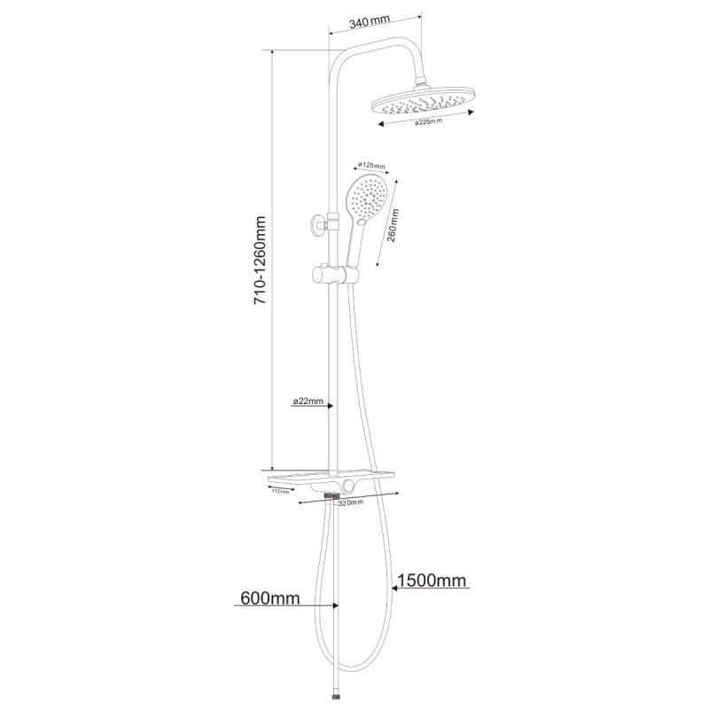 AB dušas kolonna hromētā krāsā nodrošina pilnīgu dušas risinājumu ar praktisku plauktu nepieciešamajiem produktiem. Šī daudzfunkcionālā dušas kolonna ietver gan augšējo lietusdušu, gan rokas dušu ar regulējamu turētāju, kas nodrošina universālas dušas iespējas visiem ģimenes locekļiem. Plaukts kolonnas vidū nodrošina ērtu vietu dušas līdzekļu uzglabāšanai, padarot dušas zonu praktisku un sakārtotu. Hromētais pārklājums piešķir komplektam spīdīgu un izturīgu virsmu, kas labi papildina dažādus vannas istabu interjera stilus un nodrošina vieglu apkopi. Rokas dušas turētāju var regulēt leņķī un augstumā, kas ļauj pielāgot optimālu ūdens strūklas virzienu katram lietotājam. Komplekts ir bez jaucējkrāna, tāpēc nepieciešams atsevišķs ūdens temperatūras regulēšanas sistēmas risinājums. Kolonnas kopējais augstums 71 līdz 126 cm, lietusdušas galvas diametrs 22.5 cm, rokas dušas galvas diametrs 12.5 cm, dušas pievada garums 150 cm, pievada garums līdz maisītājam 60 cm, plaukta izmēri 32 x 11.2 cm.