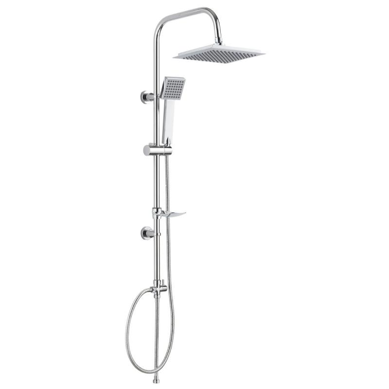 AB dušas kolonna hromētā krāsā bez maisītāja nodrošina pilnīgu un funkcionālu dušas risinājumu ar praktisku ziepju trauciņu. Šī elegantā dušas kolonna ietver gan lielu lietusdušu ar kvadrātveida formu, gan rokas dušu ar regulējamu turētāju, kas nodrošina universālas dušas iespējas visiem ģimenes locekļiem. Trauciņš kolonnas apakšējā daļā nodrošina ērtu vietu ziepju uzglabāšanai, padarot dušas zonu praktisku un sakārtotu. Hromētais pārklājums piešķir komplektam spīdīgu un ilgmūžīgu virsmu, kas labi sader ar dažādiem vannas istabu stiliem un nodrošina vieglu kopšanu. Rokas dušas turētāju var regulēt leņķī un pielāgot augstumā, kas ļauj katram lietotājam atrast optimālo pozīciju. Komplekts ir bez maisītāja, tāpēc nepieciešams atsevišķs ūdens temperatūras regulēšanas risinājums. Kolonnas kopējais augstums 97 cm, lietusdušas izmērs 20 x 20 cm, rokas dušas galvas platums 7.5 cm un augstums 23 cm, dušas pievada garums 150 cm, pievada garums līdz maisītājam 60 cm.