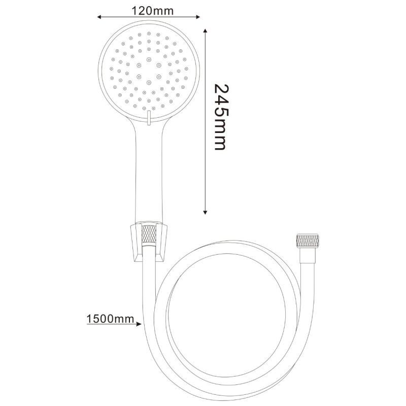 AB dušas komplekts ir hromēts vannas istabas risinājums ar 3 ūdens plūsmas režīmiem, kas nodrošina luksusa dušas pieredzi ar maksimālu komfortu un funkcionalitāti. Šis pilnīgais komplekts ietver lielu dušas galviņu ar trīs dažādiem strūklu veidiem, augstas kvalitātes hromētu šļūteni un elegantu sienas stiprinājumu, kas ļauj izveidot profesionālu dušas sistēmu. Dušas galviņas trīs režīmi nodrošina plašu ūdens plūsmas spektru no maiga lietus efekta līdz intensīvam masažas režīmam, ļaujot pilnībā personalizēt dušas procedūru atbilstoši noskaņojumam un vajadzībām. Hromētā apdare ne tikai rada greznu izskatu, bet arī garantē izcilu izturību pret mitrumu, koroziju un ikdienas nolietojumu, vienlaikus atvieglojot tīrīšanu un apkopi. Lielais dušas galvas izmērs nodrošina plašāku ūdens pārklājumu un ekskluzīvu dušas pieredzi. Dušas galvas diametrs 12 cm, kopējais garums 24.5 cm, dušas pievada garums 150 cm.