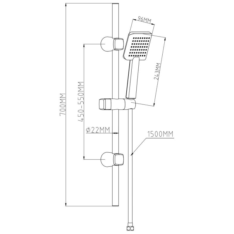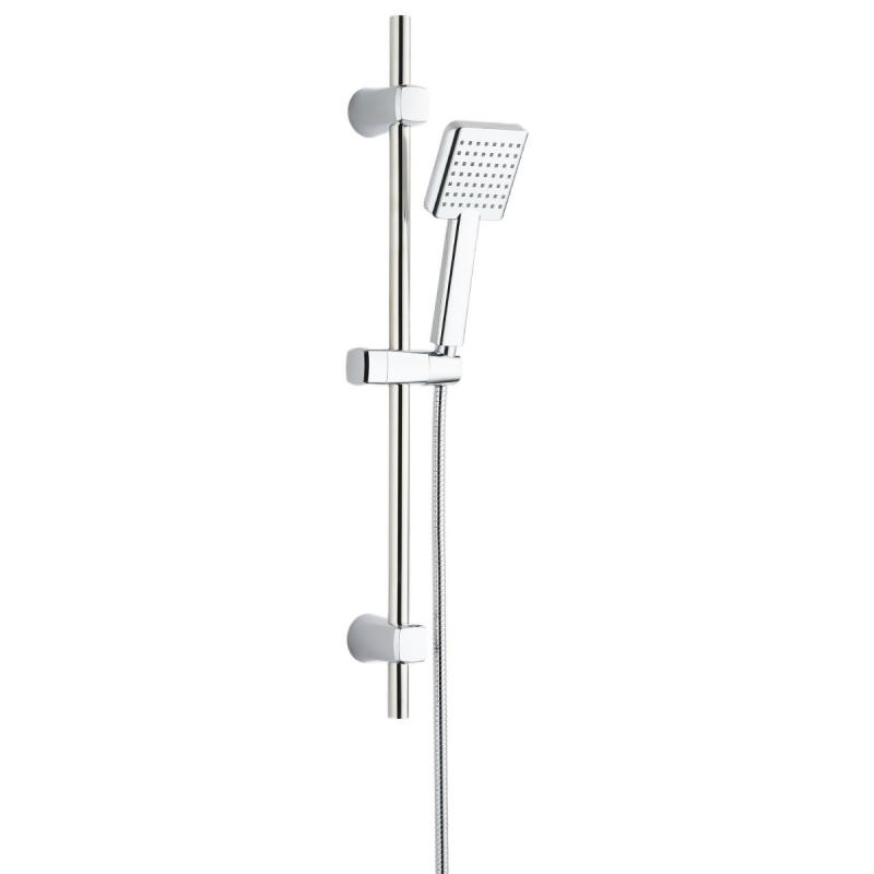 AB dušas komplekts hromētā krāsā nodrošina vienkāršu un praktisku risinājumu vannas istabas aprīkojumam. Šis dušas komplekts ietver dušas stieni un rokas dušu ar vienu ūdens strūklas režīmu, kas nodrošina stabilu un komfortablu dušas pieredzi. Hromētais pārklājums piešķir komplektam spīdīgu un izturīgu virsmu, kas labi sader ar dažādiem vannas istabu dizainiem un nodrošina vieglu apkopi. Dušas turētāju var regulēt augstumā un pielāgot leņķī, kas ļauj katram lietotājam atrast optimālo pozīciju. Komplekts ietver visas nepieciešamās uzstādīšanas detaļas un ir piemērots dažādām vannas istabu konfigurācijām. Dušas stieņa augstums 70 cm, dušas galvas platums 9.6 cm un augstums 24.3 cm, dušas pievada garums 150 cm.