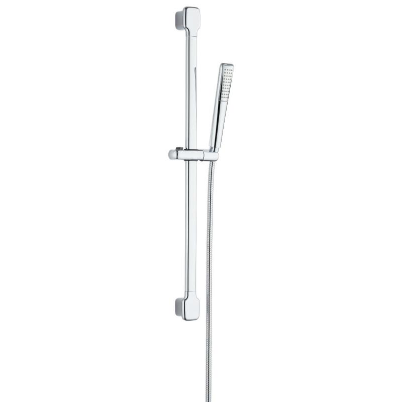 AB dušas komplekts hromētā krāsā nodrošina vienkāršu un funkcionālu risinājumu vannas istabas aprīkojumam. Šis dušas komplekts ietver dušas stieni un kompaktu rokas dušu ar vienu ūdens strūklas režīmu, kas nodrošina stabilu un ērtu dušas pieredzi. Hromētais pārklājums piešķir komplektam spīdīgu un izturīgu virsmu, kas labi sader ar dažādiem vannas istabu dizainiem un nodrošina vieglu kopšanu. Dušas turētāju var regulēt leņķī un augstumu pielāgot dažādām vajadzībām, nodrošinot optimālu komfortu. Komplekts ietver visas nepieciešamās uzstādīšanas detaļas un ir piemērots gan privātmāju, gan dzīvokļu vannas istabām. Dušas stieņa augstums 74.5 cm, dušas galvas platums 3 cm un augstums 21 cm, dušas pievada garums 150 cm.