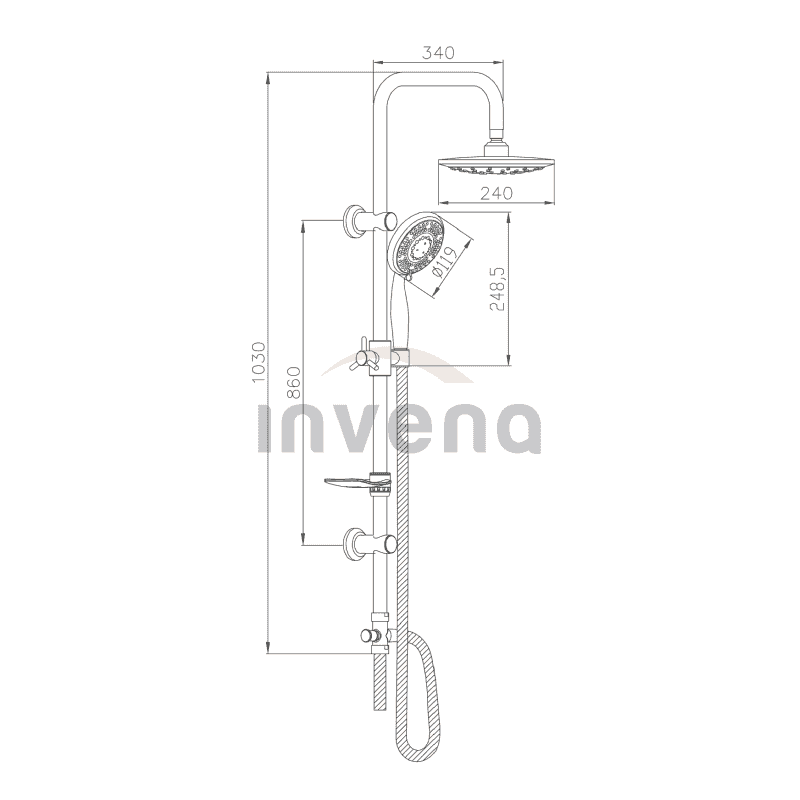 Dušas stienis Socho. Dušas stieņa augstums 103 cm. Regulējami montāžas kronšteini.