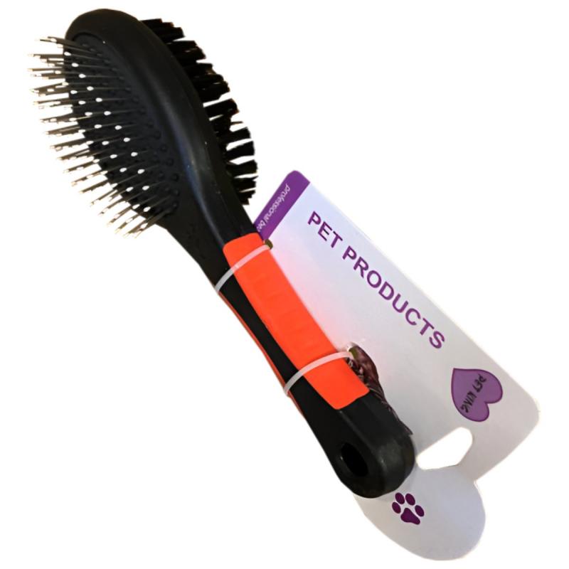 Divpusēja ķemme suņu un kaķu apmatojuma kopšanai. Mīkstie neilona sari palīdz izķemmēt atmirušo spalvu no dzīvnieka kažoka, kā arī ir īpaši piemēroti dzīvniekiem ar ļoti īsu apmatojumu vai jutīgu ādu. Garie sari ar noapaļotajiem galiem masē ādu. Izmērs 21 x 6.5 cm.