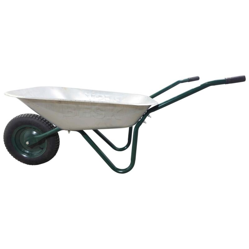 Besk ķerra ir uzticams palīgs dažādiem dārza un būvniecības darbiem, nodrošinot efektīvu smilšu, zemes vai būvmateriālu pārvietošanu. Cinkotā kulba ar 65 litru tilpumu ir izturīga pret koroziju un viegli kopjama, padarot šo ķerru piemērotu ilgstošai lietošanai. Metāla biezums 0.6 mm un rāmja biezums 1.2 mm garantē konstrukcijas stabilitāti un ilgmūžību pat intensīvā darbā. Piepūšamā riepa 3.00 - 8 nodrošina vieglu manevrētspēju uz dažādām virsmām. Ideāla izvēle tiem, kas meklē praktisku un izturīgu ķerru dārza un celtniecības darbiem.