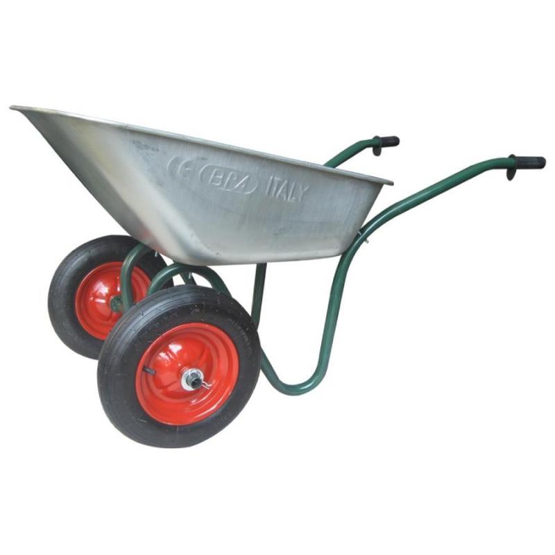 BPA dārza ķerra ar diviem riteņiem ir izcils palīgs smagu kravu pārvietošanai dārzā, būvlaukumā vai saimniecībā, nodrošinot stabilitāti un vieglu manevrēšanu pat uz nelīdzenām virsmām. Cinkotais metāla korpuss efektīvi aizsargā pret koroziju un garantē ilgmūžību, savukārt ergonomiskie rokturi ar gumijas pārklājumu nodrošina drošu un ērtu satvērienu ilgstoša darba laikā. Divasu konstrukcija ievērojami samazina apgāšanās risku un atvieglo smagu materiālu, piemēram, gružu vai zemes, pārvietošanu. Izturīgie piepūšamie riteņi ar metāla diskiem nodrošina vienmērīgu un klusu pārvietošanos dažādos darba apstākļos. Šī ķerra palīdz optimizēt darba procesu un ietaupīt laiku, padarot to par neaizvietojamu rīku katrā dārzā vai būvlaukumā. Kulbas tilpums 100 l.