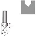DEDRA 07F052B V-veida rievfrēze ir ideāli piemērota precīzu 90° V-veida rievu izveidei koksnē un koksnes plātnēs, piemēram, saplāksnī, MDF un skaidu plātnēs. Izgatavota no ātrgriešanas tērauda (HSS) ar volframa karbīda asmeni, tā nodrošina ilgu kalpošanas laiku un asumu. Frēzes galviņa pārklāta ar karstumizturīgu pārklājumu, kas palielina izturību pret nodilumu.