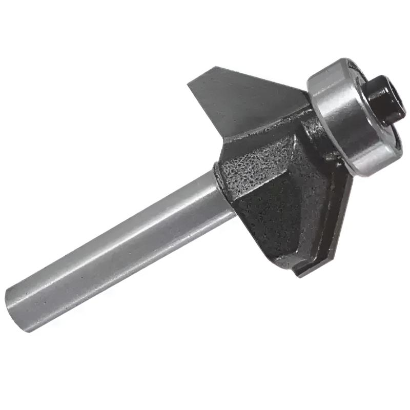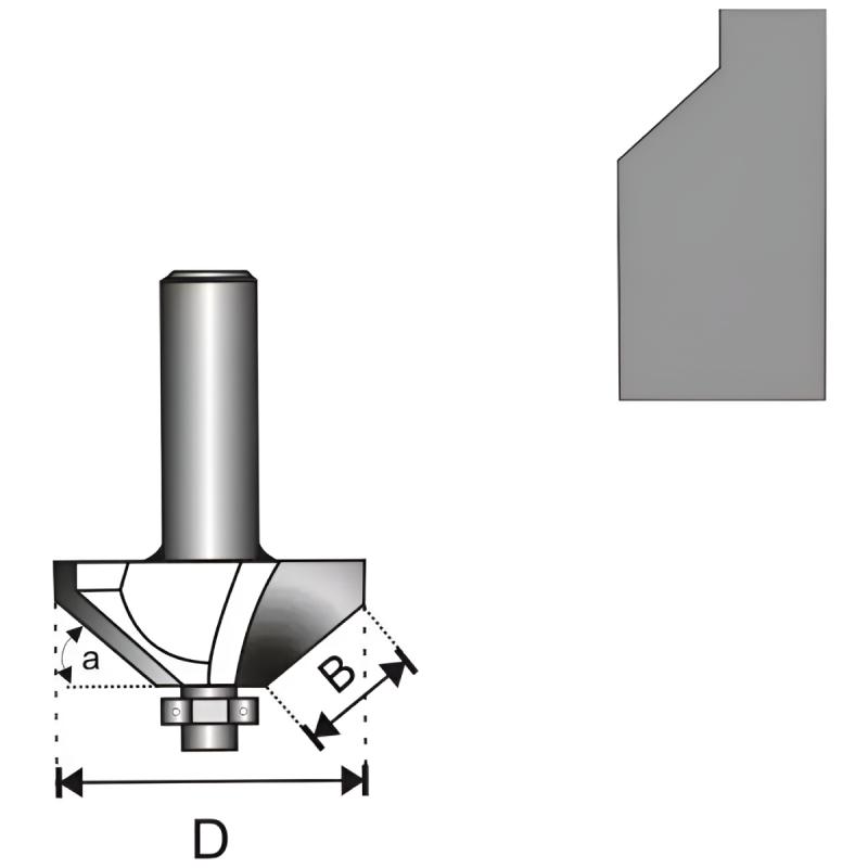 DEDRA 07F101A ir 45° leņķa frēze ar virzošo gultni, kas ir piemērota darbam ar koksni, saplāksni, MDF un skaidu plātnēm. Šī frēze ir izgatavota no ātrgriešanas tērauda (HSS) un aprīkota ar volframa karbīda asmeņiem, kas nodrošina ilgu kalpošanas laiku un lielisku griešanas kvalitāti. Tā ir arī aprīkota ar gultni, kas uzlabo griešanas precizitāti un nodrošina gludu darbību.