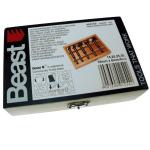 Beast frēžu komplekts ir profesionāls kokapstrādes instruments, kas sastāv no 5 frēzēm izmēros 15, 20, 25, 30 un 35 mm ar 8 mm kāta diametru. Šīs oglekļa tērauda frēzes ir īpaši izstrādātas augstas kvalitātes apaļu caurumu veidošanai kokā, mezglu un tapskrūvju izņemšanai, nodrošinot tīru un precīzu malu apstrādi.