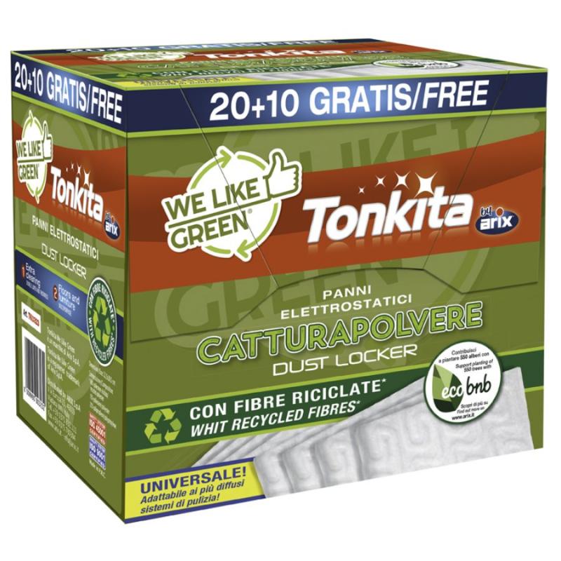 Tonkita We Like Green grīdas slotas rezerves ir ekoloģiskas vienreizlietojamās drānas, kas izgatavotas no pārstrādātām šķiedrām un nodrošina efektīvu putekļu savākšanu. Īpašais biezais reljefais raksts palielina drānas spēju uztvert un noturēt lielāku putekļu, drupatu un matu daudzumu vienā reizē, padarot grīdu tīrīšanu ātrāku un rezultatīvāku. Šīs universālās drānas ir piemērotas dažāda veida grīdu tīrīšanai, īpaši parketa, marmora, keramikas grīdām un grīdlīstēm, kā arī griestiem, sienām un mēbelēm. Komplektā ir 30 drānas, kas nodrošina ilgstošu lietošanu un ļauj regulāri uzturēt tīrību mājās bez nepieciešamības bieži iegādāties jaunu iepakojumu. Produktu ieteicams glabāt bērniem un mājdzīvniekiem nepieejamā vietā, kā arī sargāt no karstuma avotiem.