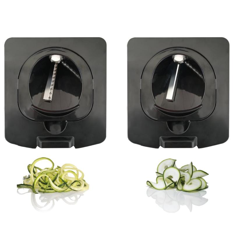 Daudzfunkcionālais griezējs dārzeņiem un augļiem Pro ir universāla virtuves ierīce, kas ļauj vienā mirklī sagriezt produktus kubiņos, salmiņos vai spirālēs tieši ietilpīgajā savākšanas traukā. Komplektā ir vairāki maināmi griešanas režģi dažādu izmēru kubiņu un strēmeļu gatavošanai, tāpēc griezējs ir īpaši noderīgs sīpolu, kartupeļu, paprikas un citu dārzeņu ātrai sagatavošanai salātiem, zupām un piedevām. Papildu spirāļu asmeņu ieliktņi ļauj izveidot gan plānas dārzeņu spirāles, gan dekoratīvas lentes, kas ir ideāli veselīgām cukīni vai burkānu nūdelēm. Asie nerūsējošā tērauda asmeņi sagriež produktus ar minimālu piepūli, bet stingrais vāks ar lielo spiedvirsmu nodrošina vienmērīgu un drošu lietošanu. Ietilpīgais caurspīdīgais konteiners ar tilpuma atzīmēm ļauj kontrolēt sagriezto produktu daudzumu un uzturēt darba virsmu tīru. Trauka ietilpība 1.2 l.