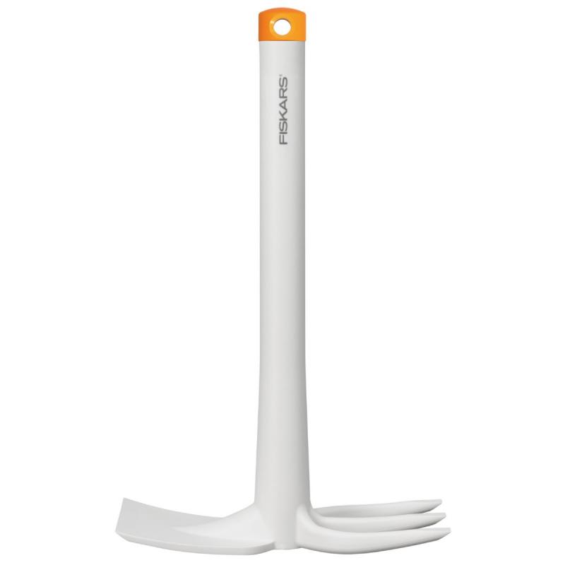 Baltais dārza kaplis ir noderīgs dārza rīks ar divpusēju galvu, kas ir ideāli piemērota stādīšanas un ravēšanas darbiem. Garā pamatne ļauj ērti piekļūt puķu dobei, savukārt FiberComp™ materiāla konstrukcija padara rīku ārkārtīgi vieglu un vienlaikus arī izturīgu. Tāpat kā citi dārzkopības rīki, arī šis kaplis ir izgatavots no FiberComp™ materiāla, kas nerūsē un nenoveco. Zarus un kapļa malu var noasināt, lai gādātu par irdināšanas efektivitāti daudzu gadu garumā. Pakāršanai paredzēts caurums glabāšanai. Var pacelt līdz pat 35 kg. Garums 322 mm, platums 199 mm.