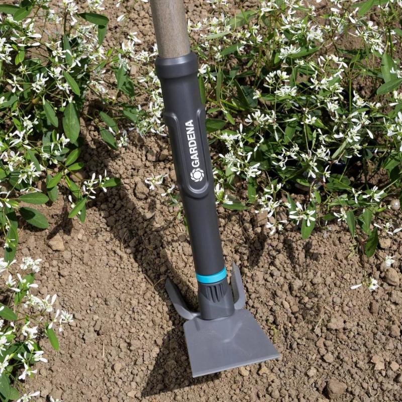 GARDENA NatureLine kaplis ir lieliski piemērots dažādiem dārza darbiem: kaplēšanai, ravēšanai, aerēšanai, irdināšanai vai augsnes izlīdzināšanai. Vienā pusē kaplim ir taisns asmens, bet otrā pusē divi 7.5 cm gari zari. Lakots dižskabārža kāts (FSC® sertificēts) veido fiksētu un izturīgu savienojumu ar grābekli - bez vērpšanās un deformācijas. Kaplis ir izgatavots no augstas kvalitātes tērauda ar Duroplast pārklājumu, lai nodrošinātu optimālu aizsardzību pret koroziju.