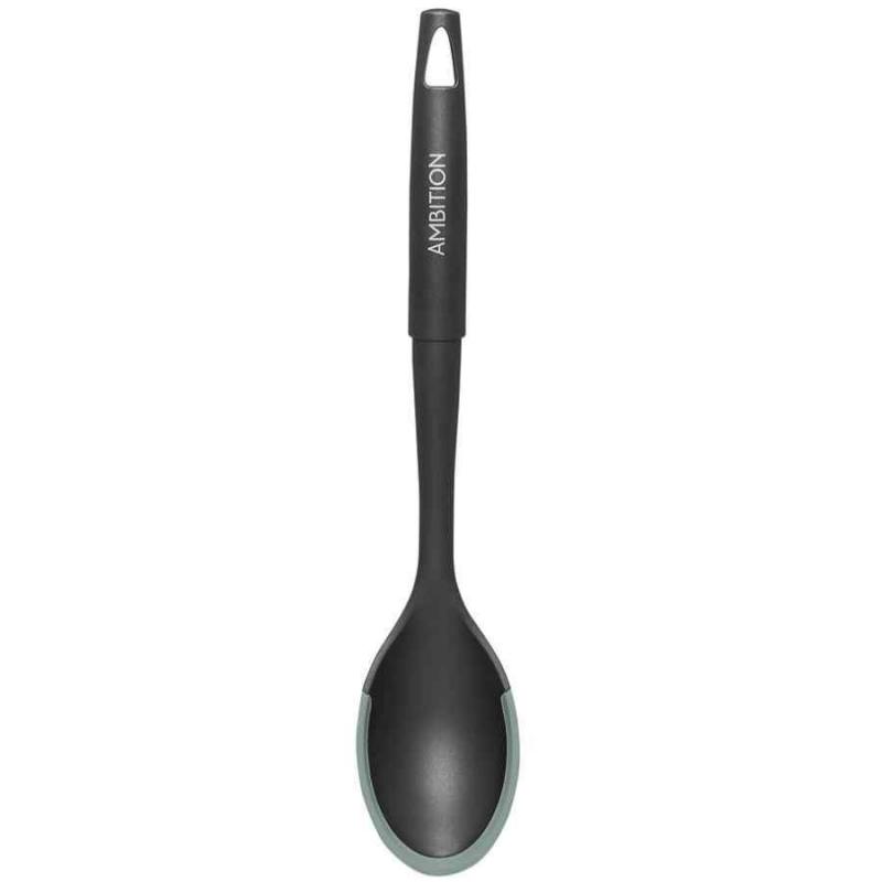 Ambition Fern servēšanas karote ar zaļu silikona malu ir praktisks virtuves piederums ērtai ēdienu servēšanai. Karote ir izgatavota no karstumizturīga neilona ar mīkstu silikona malu, kas novērš skrāpējumus uz katlu un pannu virsmām. Pateicoties izturībai līdz 180°C un ergonomiskajam rokturim, karote nodrošina drošu un ērtu lietošanu ikdienā. Servēšanas karotes garums ir 34 cm, platums 6.5 cm un dziļums 2.3 cm.
