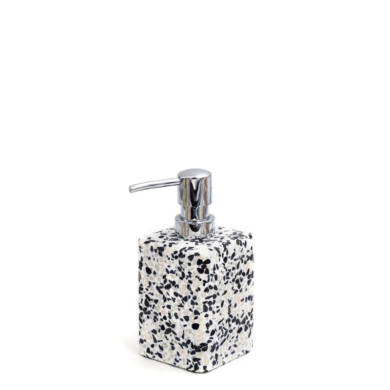 Elegants un funkcionāls šķidro ziepju dozators ar akmens imitācijas rakstu. Piemērots ziepēm, mazgāšanas līdzekļiem utt. Izgatavots no polirezīna un ABS plastmasas. Nedrīkst mazgāt trauku mazgājamā mašīnā. Tilpums 220 ml, izmērs (G x P x A) 7.3 x 7.3 x 15.7 cm.