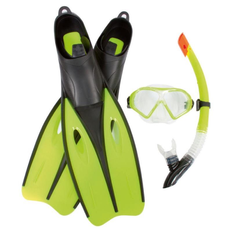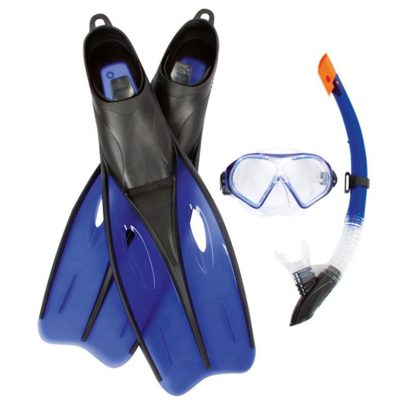 Bestway niršanas komplekts ir pilns Hydro Pro Dream Diver aprīkojums ērtai snorkelēšanai un zemūdens pasaules iepazīšanai atvaļinājumā vai baseinā. Komplektā ietilpst niršanas maska, elpošanas caurule un pleznas, nodrošinot visu nepieciešamo drošām un komfortablām ūdens aktivitātēm. Maska ar drošības stikliem un dubulto silikona maliņu cieši pieguļ sejai un palīdz novērst ūdens iekļūšanu, bet regulējamā divdaļīgā silikona galvas siksna ļauj to precīzi pielāgot. Snorkelis ar Dry Top tehnoloģiju samazina ūdens iekļūšanu caurulē, savukārt iemutis ar integrētu izpūšanas vārstu nodrošina ērtu un dabisku elpošanu. Mīkstās pleznas palīdz vieglāk un ātrāk pārvietoties ūdenī, padarot šo niršanas komplektu ideāli piemērotu gan iesācējiem, gan pieredzējušiem peldētājiem.