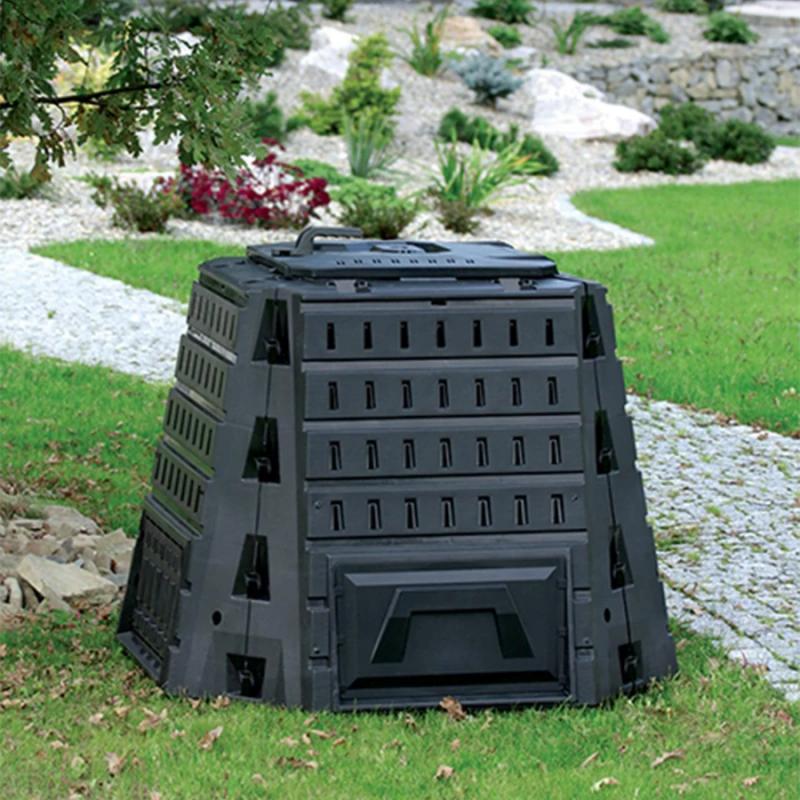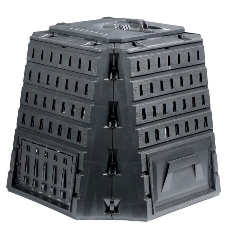 Kompostētājs BIOCOMPO ir ideāls risinājums mājas komposta ražošanai, veicinot videi draudzīgu atkritumu pārstrādi un augsnes bagātināšanu. Tā izturīgā plastmasas konstrukcija ar dubultām sienām nodrošina ilgmūžību un efektīvu kompostēšanas procesu. Kompostētājam ir vāks ar rokturi un ventilācijas atverēm, kas uzlabo gaisa cirkulāciju un paātrina organisko materiālu sadalīšanos. Tas ir izturīgs pret salu un ultravioletajiem stariem, padarot to piemērotu lietošanai dažādos klimatiskajos apstākļos. Izmērs (G x P x A) 101.8 x 101.8 x 84.4 cm, tilpums 500 l.