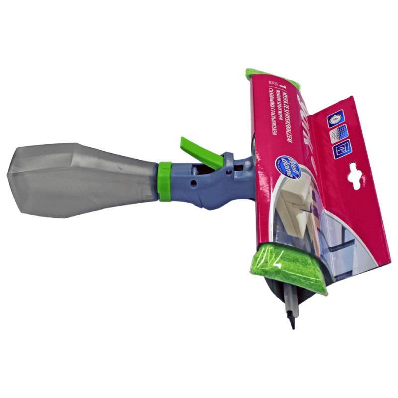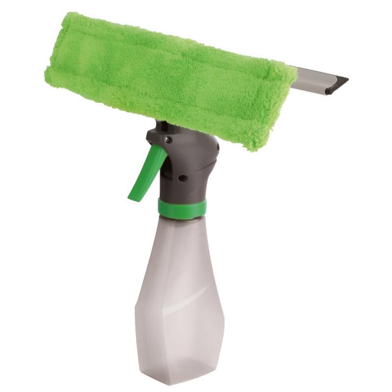 Uzticams 3-in-1 tīrīšanas aprīkojums - mikrošķiedras sūklis, ūdens savācējs un šķidruma tvertne ar smidzinātāju. Maigi tīra un pulē logus, stiklus, spoguļus un dušas kabīnes. Lieliski noņem netīrumus, nesaskrāpējot stiklu, atstājot to bez svītrām un traipiem. Mazgāšanas rīks ir aprīkots ar ergonomisku un viegli uzpildāmu šķidrumu tvertni, tam tīrīšanas laikā nav jāizmanto papildus ūdens spaiņi. Lieliski piemērots lietošanai mājās. Mikrošķiedras sūkli var mazgāt veļas mašīnā līdz 60°C.