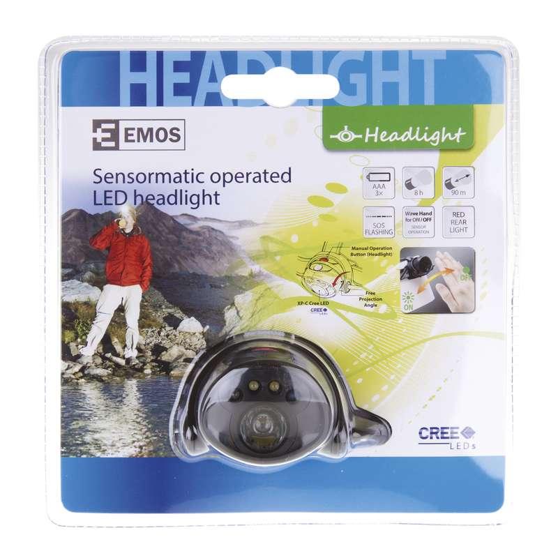 Lukturis uz galvas liekams ar sensoru LED, gaismas attālums 100% - 90 m, balts LED - 10 m; degšanas laiks 8 stundas pie 100%: priekšējais lukturis - balts LED - 40 h, mirgojošs - 100 h; aizmugurējais lukturis - sarkans LED 120 h, mirgojošs - 180h; darbojas uz 3× 1.5V AAA baterijām