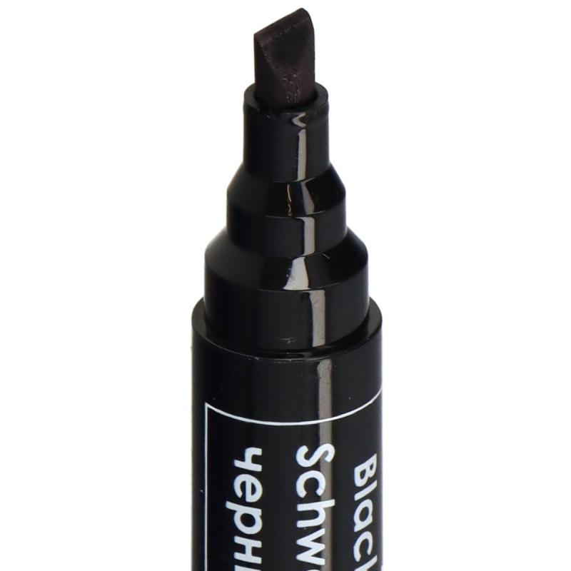 Permanentais marķieris ar slīpu uzgali melnā krāsā, piemērots dažādu virsmu (plastmasas, metāla, kartona, stikla) marķēšanai. Uzgalis ļauj ērti veidot gan plānas, gan biezas līnijas (līnijas platums 0.5 mm). Marķieris satur ūdens bāzes, noturīgu un neizdzēšamu tinti, kas pēc nožūšanas kļūst ūdensnoturīga un izturīga pret saules gaismu, berzi un vairākiem šķīdinātājiem. Ērts lietošanai birojos, noliktavās, darbnīcās vai mājās. Izmērs 138 x 18 mm.