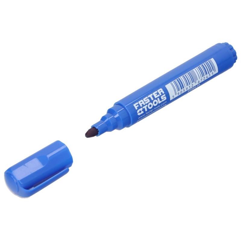 Faster Tools permanentais marķieris ir paredzēts ilgstošai marķēšanai un rakstīšanai uz dažādām virsmām. Tā tinte ir izturīga pret izbalēšanu, ūdeni un nodilumu, kas nodrošina skaidru un ilglaicīgu marķējumu. Marķieris ir ideāli piemērots lietošanai gan mājās, gan darbnīcās un celtniecībā. Marķiera nošķeltais gals ļauj rakstīt gan ar plānu, gan ar biezu līniju, pielāgojoties dažādām vajadzībām. Marķieris ir izturīgs pret daudziem šķīdinātājiem un lakām. Izmērs 138 x 18 mm, uzgalis 0.5 mm, krāsa zila.