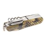 Atom daudzfunkcionālais tūrisma nazis ar 14 dažādām funkcijām ir neaizstājams rīks gan pārgājienos, gan ikdienas lietošanai brīvā dabā. Tas apvieno šķēres, zāģīti, nagu vīli, nazi, konservu un pudeļu attaisāmo, kā arī citus noderīgus instrumentus vienā kompaktā ierīcē. Nazis izgatavots no izturīga nerūsējošā tērauda un aprīkots ar aizsargvāciņu, ko var piestiprināt pie jostas, nodrošinot ērtu piekļuvi jebkurā situācijā. Izmērs 9 × 2.5 × 2 cm.