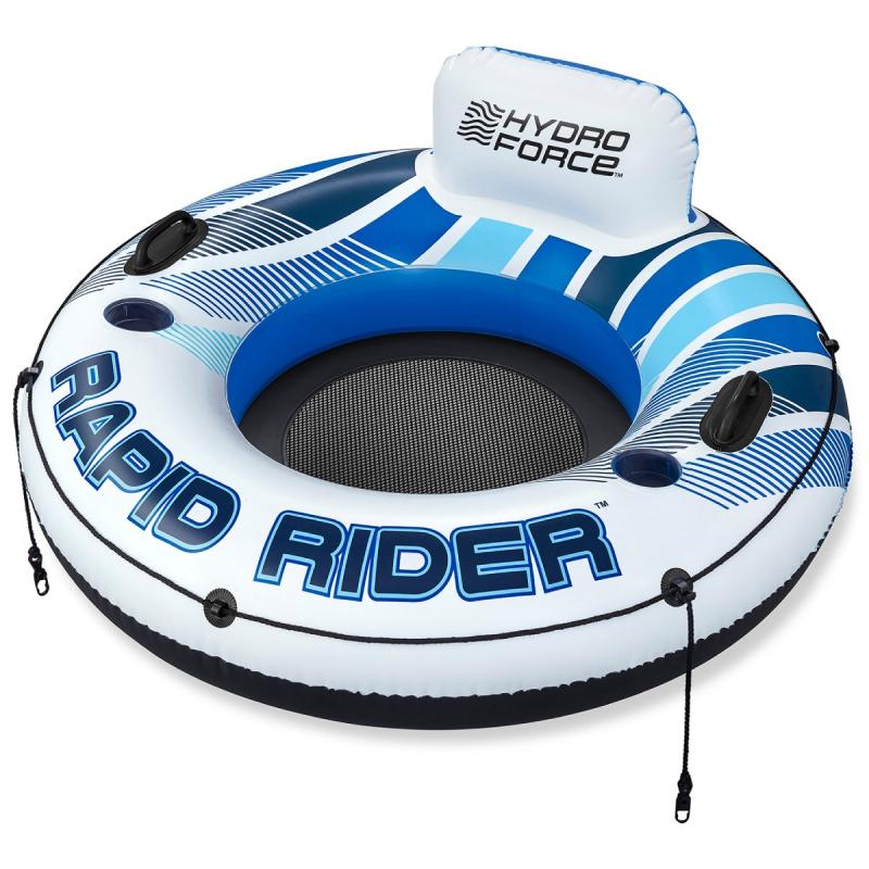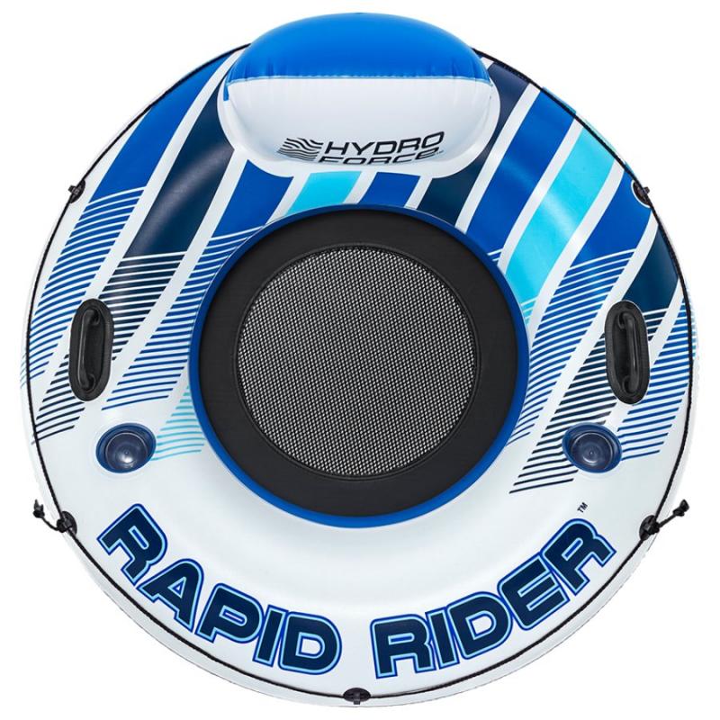 Hydro Force peldriņķis Rapid Rider ir ērts piepūšamais peldlīdzeklis vienai personai relaksētai atpūtai uz ūdens. Baltā un zilā dizaina peldriņķis ar dinamisku grafiku piešķir modernu izskatu un ir piemērots gan baseinam, gan ezeram vai jūrai. Lielais diametrs nodrošina stabilu peldspēju un daudz vietas ērtai sēdēšanai vai sauļošanai uz viļņiem.