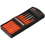Dorņi izgatavoti no rūdīta hroma - vanādija Cr-V tērauda. Instrumenti ir izturīgi pret bojājumiem. Komplektā 1.5 x 150 mm, 3 x 150 mm, 4 x 150 mm, 5 x 150 mm, 6 x 150 mm, 8 x 150 mm.